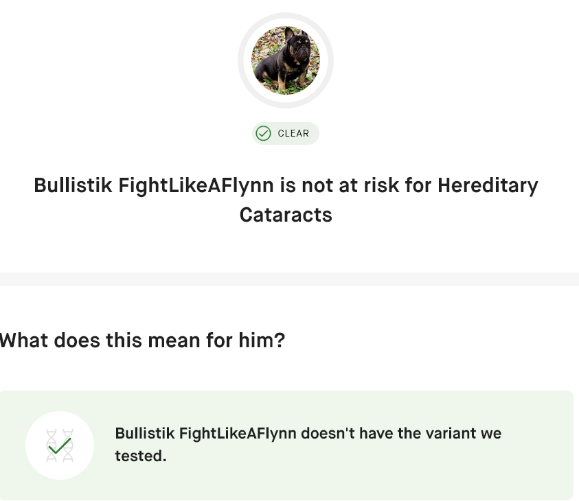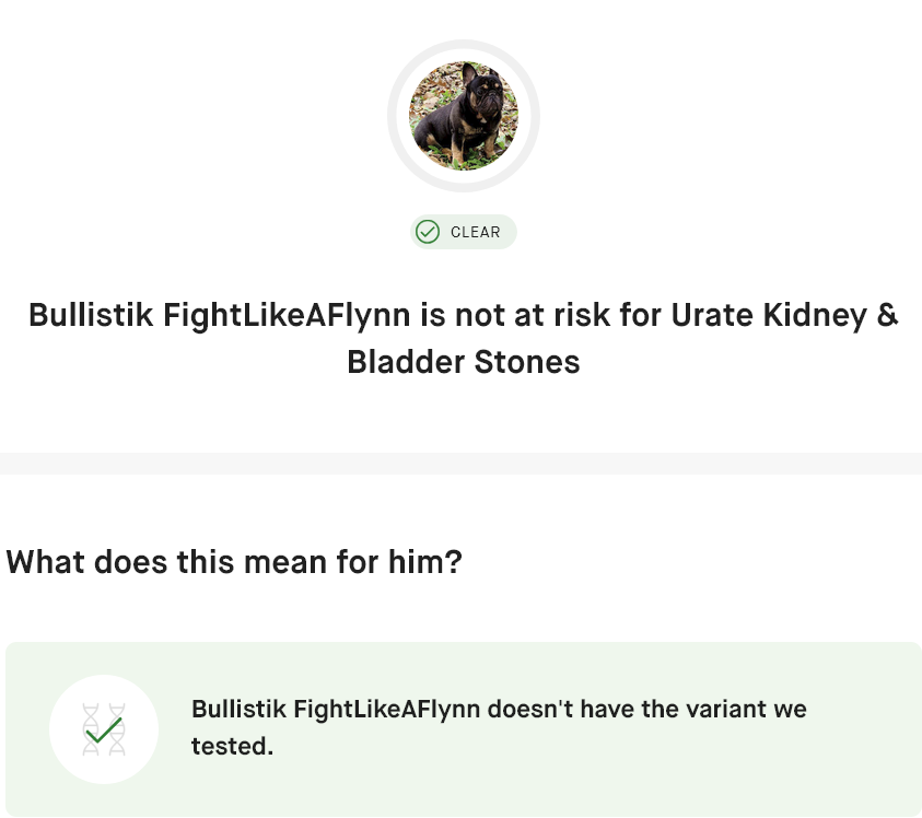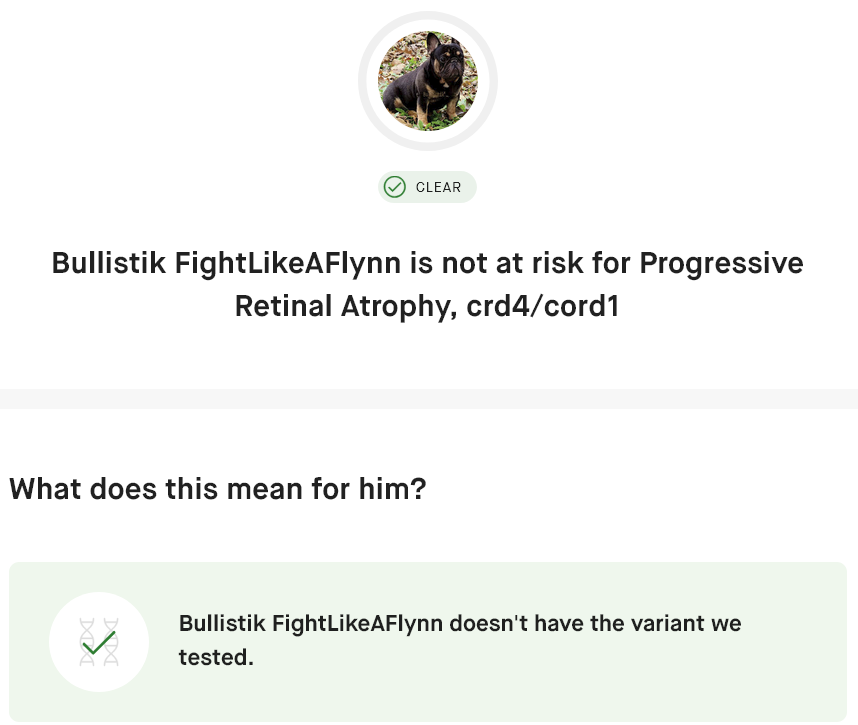 Flynn has been DNA Health Tested with EMBARK and results are below